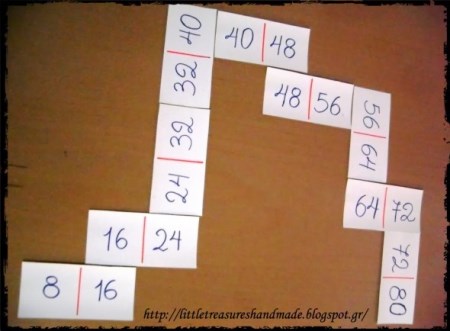 Αν δυσκολεύεται, μπορείτε στο δεύτερο μισό κάθε ορθογωνίου να γράφετε αναλυτικά την πράξη που ακολουθεί. Για παράδειγμα, δίπλα στο 8, μπορείτε να γράψετε 2*8 και στο αμέσως επόμενο χαρτάκι θα πρέπει ν' ακολουθεί το 16.