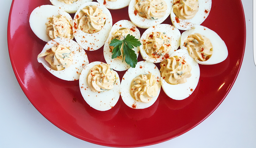 Ψιλοκόψε το μυρωδικό της επιλογής σας. Οταν είναι κρύα τα αβγά, ξεφλουδίστε τα, κόψτε τα στη μέση και αφαιρέστε τους κρόκους.