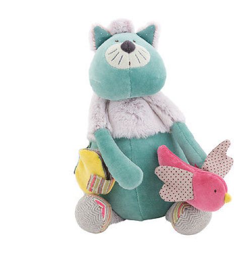 Ο πιο χαριτωμένος γάτος που θα γίνει ο κολλητός φίλος του παιδιού. Κρατάει καθρέφτη και κουδουνίστρα και έχει στην αγκαλιά του ένα πουλάκι που βγάζει ήχους. Είναι φτιαγμένος από μαλακό ύφασμα για να το αγκαλιάζει άνετα και να τον… ζουλάει το παιδί.