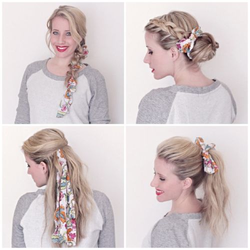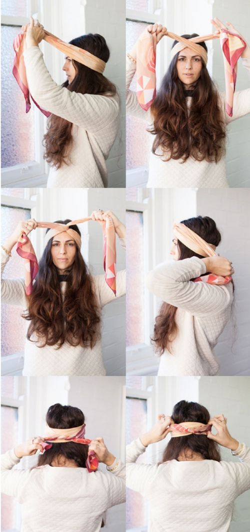 Αν δεν έχετε κορδέλες αλλά θέλετε επειγόντως να μην έρχονται τα μαλλιά μπροστά στα μάτια σας, φτιάξτε μία με το αγαπημένο σας φουλάρι. Τόσο απλά!