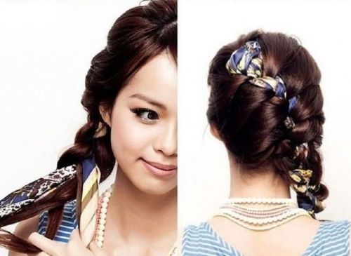 Γι’ αυτό το χτένισμα, προτιμήστε ένα πιο λεπτό φουλάρι. Δέστε το αρκετά σφιχτά γύρω απ’ το κεφάλι, σαν να φοράτε μια τιάρα, και στη συνέχεια πλέξτε γύρω του τα μαλλιά.