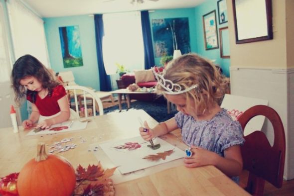 Το φθινόπωρο, μαζέψτε μεγάλα φύλλα ποικίλων αποχρώσεων και με λευκό ή ασημένιο ανεξίτηλο μαρκαδόρο σχεδιάστε επάνω τους ό,τι προστάζει η φαντασία σας.