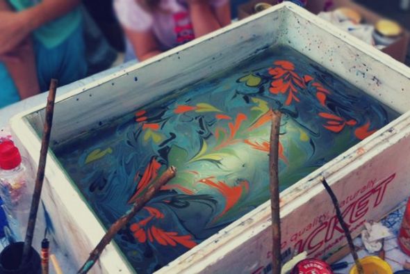Πάρτε έναν λίγο βαθύ πλαστικό δίσκο, γεμίστε τον με νερό και «ζωγραφίστε» επάνω στην επιφάνεια με λαδομπογιές και διαλυτικό. Ύστερα πάρτε ένα κομμάτι χαρτί, απλώστε το στο νερό και ύστερα τραβήξτε το για να δείτε το σχέδιο σας αποτυπωμένο επάνω του.
