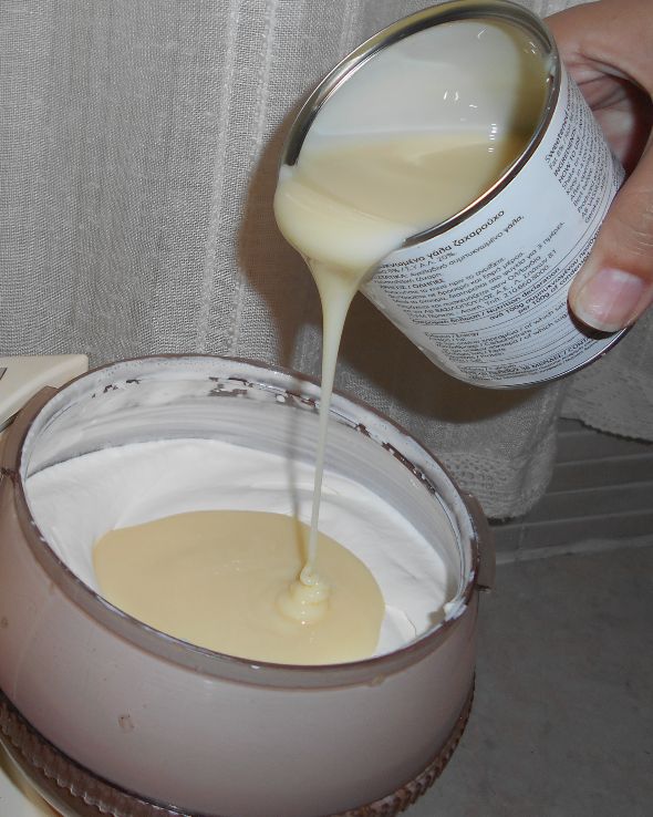 Προσθέτετε σιγά- σιγά το ζαχαρούχο γάλα για να μην «κάτσει» στην κρέμα και βάζετε πάλι σε λειτουργία το μίξερ για λιγότερο από δύο λεπτά. Ελέγχετε αν το αποτέλεσμα είναι κρεμώδες και αν χρειαστεί το «χτυπάτε» λίγο ακόμα.
