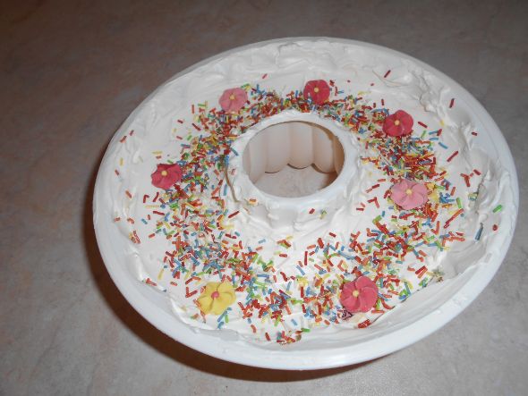 Περιχύνετε το μίγμα σε ένα πλαστικό σκεύος και το βάζετε στην κατάψυξη για 2 με τρεις ώρες.