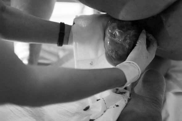 Έτσι, όταν το μοιραίο βράδυ έφτασε και η Jessica θα συναντούσε για πρώτη φορά το μωράκι της, η φωτογράφος και η μαία ήταν εκεί. Τελικά, όμως, η γυναίκα το επόμενο πρωί μεταφέρθηκε στο νοσοκομείο για να γεννήσει. «Ξαφνικά, η μαία μου είπε να σταματήσω να σπρώχνω γιατί το μωρό ήταν ακόμα στον αμνιακό του σάκο. Εγώ δεν μπορούσα να το δω γιατί γέννησα στηριζόμενη στα γόνατα, αλλά η Bel φρόντισε να βγάλει αυτές τις καταπληκτικές φωτογραφίες.» , αναφέρει χαρακτηριστικά η Jessica.