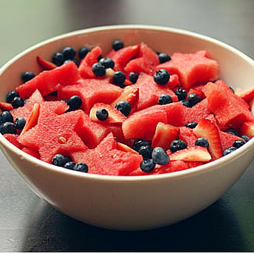 Τα κουπ-πατ μπορούν και πάλι να τεθούν στις υπηρεσίες σας, φτιάχνοντας σχήματα από καρπούζι, πεπόνι ή ροδάκινα. Με μερικές χρωματιστές πινελιές από σταφύλια ή σταφίδες, η φρουτοσαλάτα θα γίνει πολύ ελκυστική για να της αντισταθείς.