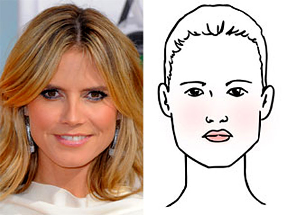 Αν το πρόσωπό σας είναι φαρδύ στο μέτωπο και τα ζυγωματικά, αλλά στενεύει στο πηγούνι, αυτό που πρέπει να πετύχετε είναι να τονίσετε τα ζυγωματικά και τα μάτια σας και να αμβλύνετε την εικόνα του σαγονιού.