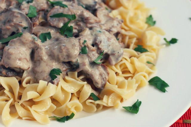 Μοσχαράκι στρογγανώφ με ταλιατέλες