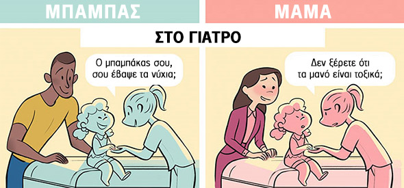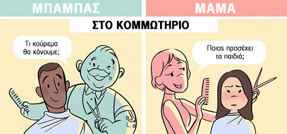 Αυτή τη διαπίστωση έκανε η Chaunie Brusie, μητέρα τεσσάρων παιδιών, η οποία μέσα σε πέντε σκίτσα διακωμώδησε τις διαφορετικές προσδοκίες που έχουμε από τη... δουλειά που κάνουν οι δύο γονείς. Δείτε τα σκίτσα και θα καταλάβετε: