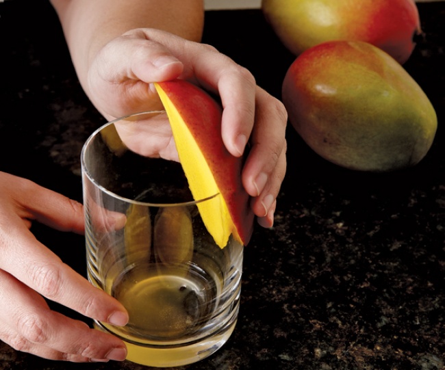 Το tip: Κόβουμε το φρούτο στη μέση, ακουμπάμε την άκρη του στο στόμιο ενός ποτηριού και το πιέζουμε προς τα κάτω ώσπου να διαχωριστεί η φλούδα απ’ τη σάρκα.