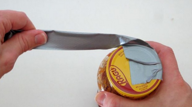 Το tip: Κολλάμε μία γερή υφασμάτινη ταινία επάνω στο καπάκι αφήνοντας τη μία άκρη της στο χέρι μας. Κρατάμε γερά το βάζο και τραβάμε δυνατά την ταινία ώσπου ν’ ανοίξει το καπάκι.