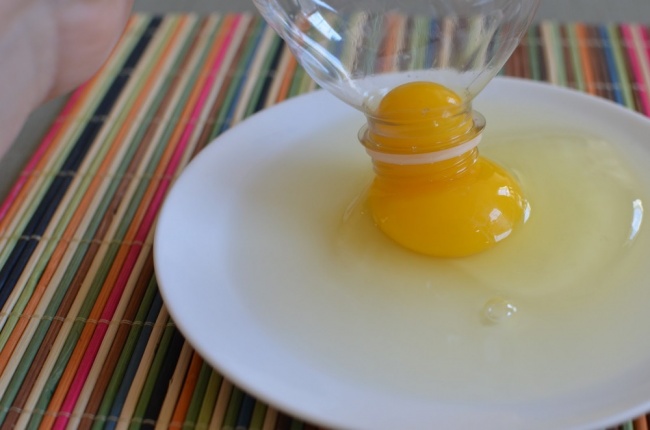 Το tip: Σπάμε το αυγό σ’ ένα πιάτο, παίρνουμε ένα πλαστικό μπουκάλι και το ζουλάμε μέχρι να φύγει από μέσα ο αέρας. Βάζουμε το στόμιο εκεί που είναι ο κρόκος του αυγού και αργά αργά αφήνουμε τον αέρα να ξαναμπεί στο μπουκάλι ώσπου να ρουφήξει και τον κρόκο. Όταν θέλουμε να βγει ο κρόκος, ξαναζουλάμε το μπουκάλι.