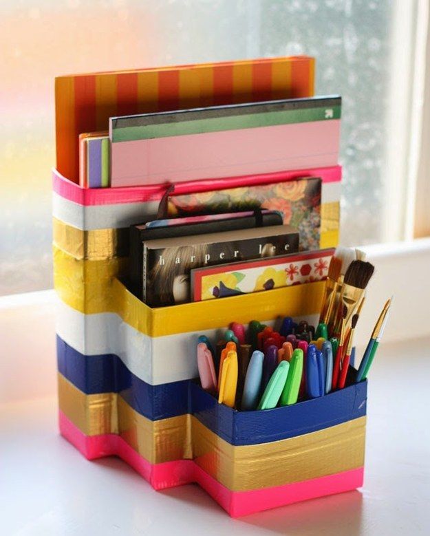 Ή ακόμα και από χαρτόκουτα ή ρολά από χαρτί υγείας που θα «ντύσετε» με αυτοκόλλητο χαρτόνι