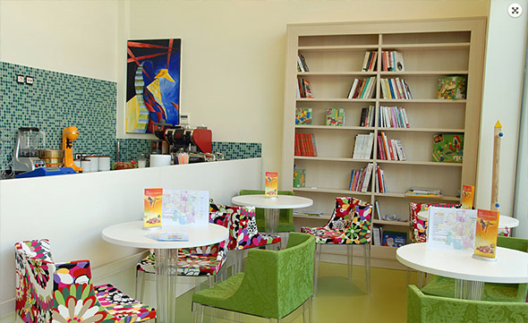 Ένας πολυχώρος, πρωτοποριακός για τα ελληνικά δεδομένα, που συνδυάζει την δημιουργική απασχόληση των παιδιών με την χαλάρωση των γονιών. Δεν χρειάζεται να ανησυχείτε για την ασφάλεια των παιδιών αφού ειδικοί παιδαγωγοί αναλαμβάνουν να σας ξεκουράσουν ενώ χαλαρώνετε. Ακόμα και στην περίπτωση που θέλετε να κάνετε τα ψώνια σας, μπορείτε να επισκεφθείτε το κατάστημα του χώρου, που διαθέτει έξυπνα προϊόντα για όλη την οικογένεια. Και αν πεινάσετε, συνεχίζετε τσιμπολογώντας ένα κρύο σνακ ή απολαμβάνοντας ένα από τα κυρίως πιάτα της κουζίνας. Εννοείται ότι για τα παιδιά που είναι σίγουρο ότι θα πεινάσουν μετά από κάποια ώρα, υπάρχει ειδικό παιδικό μενού!