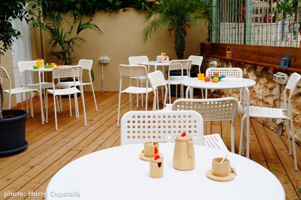 Παιχνίδια ρόλων, θέατρο, μαγειρική και κηπουρική είναι μερικές μόνο από τις δραστηριότητες που περιμένουν τα παιδιά! Καφές, γλυκό, σνακ αλλά και cocktails περιμένουν τους γονείς που δικαιούνται κάποιες στιγμές χαλάρωσης σε έναν χώρο με ιδιαίτερο design. Αν βρεθείτε στον χώρο από τις 9 μέχρι τις 2 το μεσημέρι Δευτέρα με Παρασκευή, μπορείτε να απολαύσετε τον καφέ σας μόνο με 3 ευρώ.