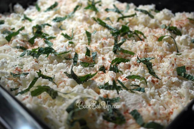 Ρίχνετε από πάνω τα τυριά και το ζαμπόν σας και πασπαλίζετε με το πιπέρι, την πάπρικα και το φρέσκο μυρωδικό της αρεσκείας σας, το οποίο έχετε πρώτα ψιλοκόψει καλά.