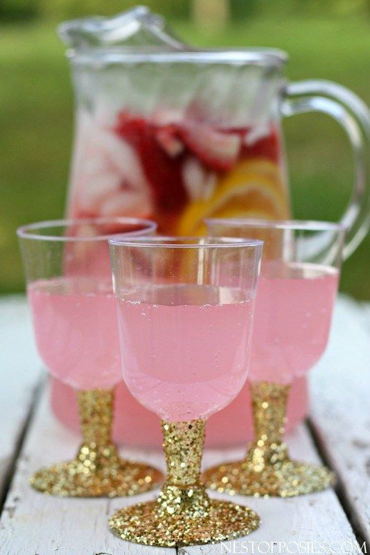Αγοράστε πλαστικά... κολωνάτα ποτήρια (μπορείτε, για παράδειγμα, να βρείτε μερικά εδώ) και με την μέθοδο που δείξαμε προηγουμένως κάντε τα να φαίνονται ακόμη πιο πριγκιπικά. Σερβίρετε εκεί χυμούς ή smoothies με βάση ροζ φρούτα και όλα τα κοριτσάκια θα μείνουν ευχαριστημένα!