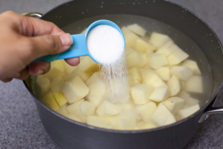 4. Προσθέστε το αλατοπίπερο την ώρα που οι πατάτες είναι στην κατσαρόλα και όχι όταν τις βγάλετε. Έτσι, θα αναμειχθούν καλύτερα με το υπόλοιπο μίγμα και θα αναδυθούν οι μυρωδιές και οι γεύσεις τους.