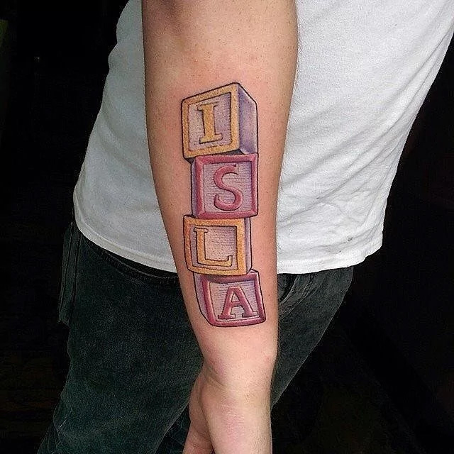 Το όνομα της κόρης του γραμμένο σε κύβους.