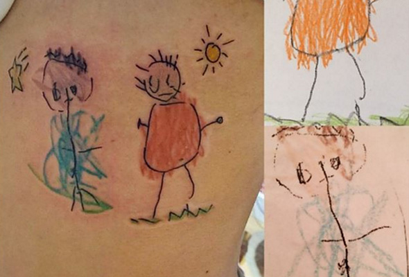 Ο μπαμπάς αυτός έκανε τατουάζ την ζωγραφιά του παιδιού του.