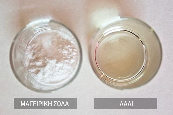 Φτιάξτε μία πάστα από μαγειρική σόδα και λίγο λάδι –ρίξτε λάδι στο μπολ με τη μαγειρική σόδα και ανακατέψτε ελαφρά μέχρι το μίγμα να γίνει παχύρευστο.