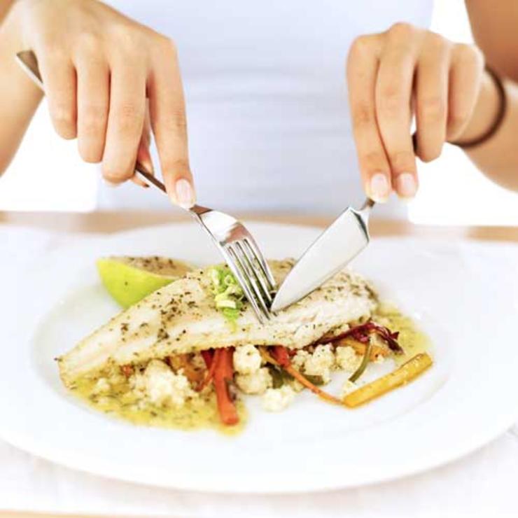 Επειδή έχουμε την τάση να παραγεμίζουμε το πιάτο μας, το κόλπο όταν σερβίρουμε το φαγητό είναι το εξής: να καλύπτουμε την επιφάνειά του κατά ¾. Αυτή είναι η σωστή αναλογία για να χορτάσετε χωρίς να «σκάσετε».