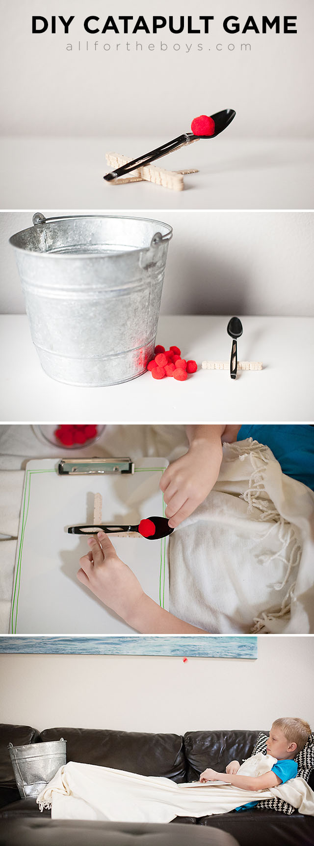 Θα χρειαστείτε απλώς ξυλάκια για παγωτό, ένα πλαστικό κουτάλι, λαστιχάκια, έναν κουβά και ό,τι επιθυμεί το παιδί να… εκτοξεύσει. Δείτε εδώ τις αναλυτικές οδηγίες για το πώς θα φτιάξετε την απλή κατασκευή.