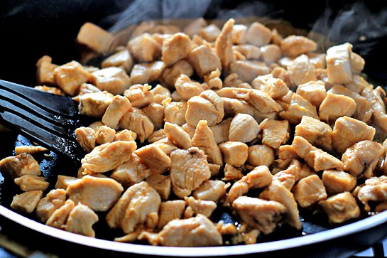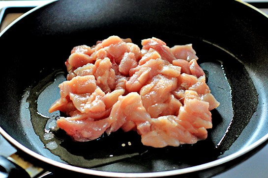 Έπειτα, προσθέστε το κοτόπουλο και ανακατεύετε συνεχώς μέχρι ο κιμάς να αλλάξει χρώμα.