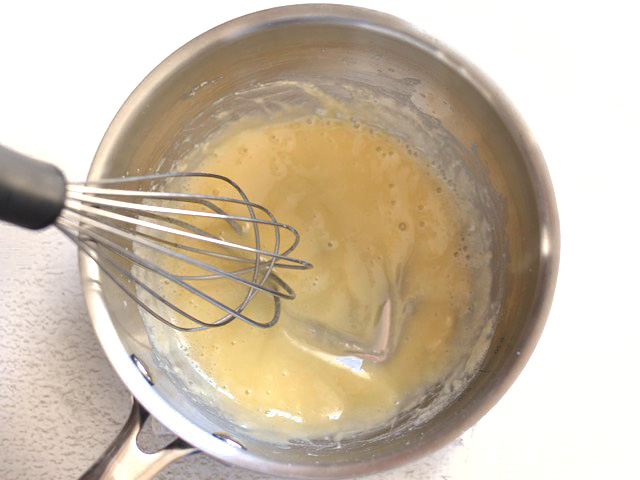 Ρίχνετε το βούτυρο και το αλεύρι σε μικρή κατσαρόλα σε μέτρια φωτιά και τα «χτυπάτε» μέχρι να ανακατευτούν καλά. Όταν το μίγμα αρχίζει να βγάζει μπουρμπουλήθρες, συνεχίζετε να ανακατεύετε για ακόμα ένα λεπτό.