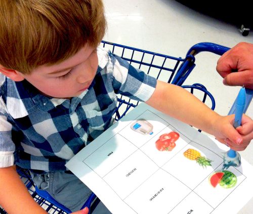 Δίπλα στην κανονική λίστα για το σούπερ μάρκετ, ζωγραφίστε τα αντίστοιχα αντικείμενα και δώστε την στο παιδί. Κάθε φορά που θα βάζετε στο καρότσι ένα από αυτά, εκείνο θα είναι αρμόδιο να τα διαγράφει.