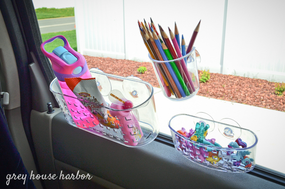 Στο πίσω μέρος των καθισμάτων του οδηγού και του συνοδηγού, κρεμάστε πλαστικές παπουτσοθήκες και τοποθετήστε τα αναγκαία πράγματα του παιδιού- από το παγουρίνο μέχρι τα μωρομάντηλα και τα παιχνίδια του.