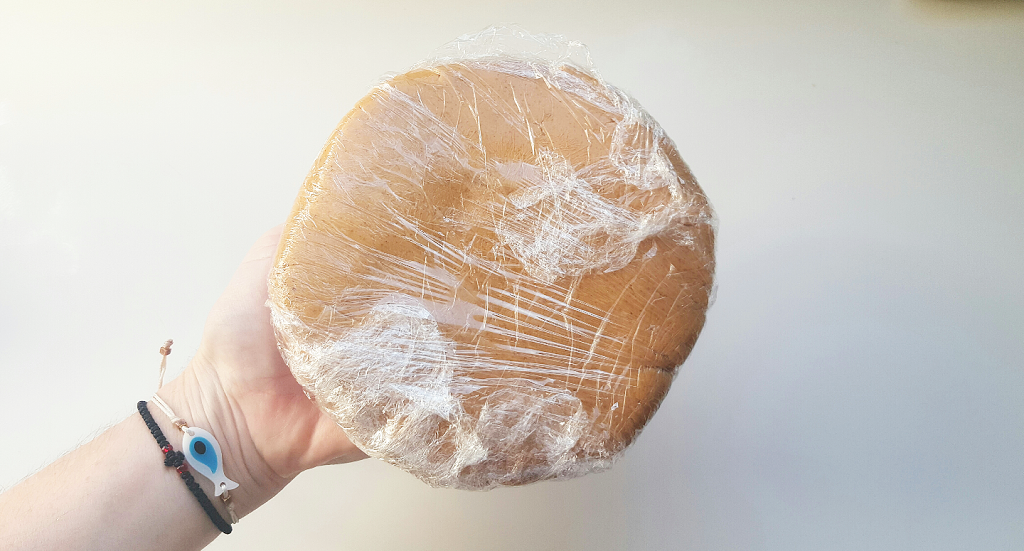 «Πατήστε» την μέχρι να γίνει «δίσκος» και τυλίξτε την με διάφανη μεμβράνη.