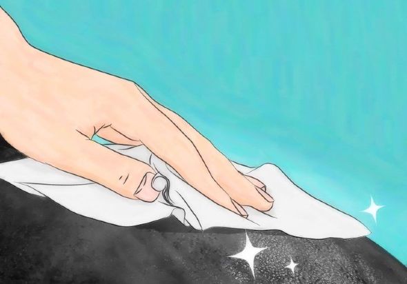 Σε λίγο ζεστό νερό, ρίξτε λίγες σταγόνες υγρού απορρυπαντικού πιάτων, βυθίστε μέσα την άκρη ενός πανιού και στη συνέχεια, περάστε το από το επίμαχο σημείο. Για να ξεβγάλετε το απορρυπαντικό, χρησιμοποιήστε ένα στεγνό, καθαρό πανί.