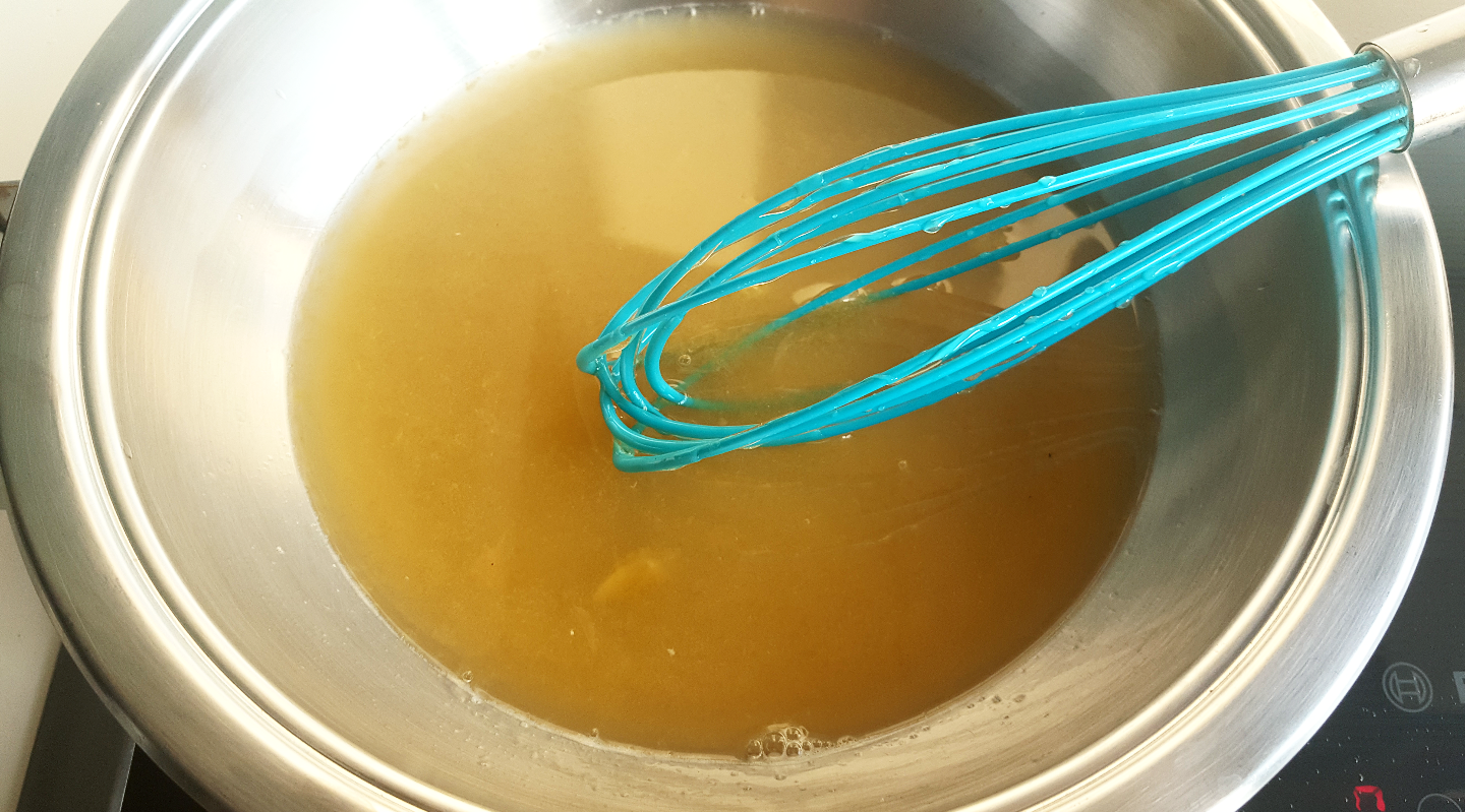 Σε ένα τηγάνι λιώνετε το μέλι με τον χυμό από το πορτοκάλι.
