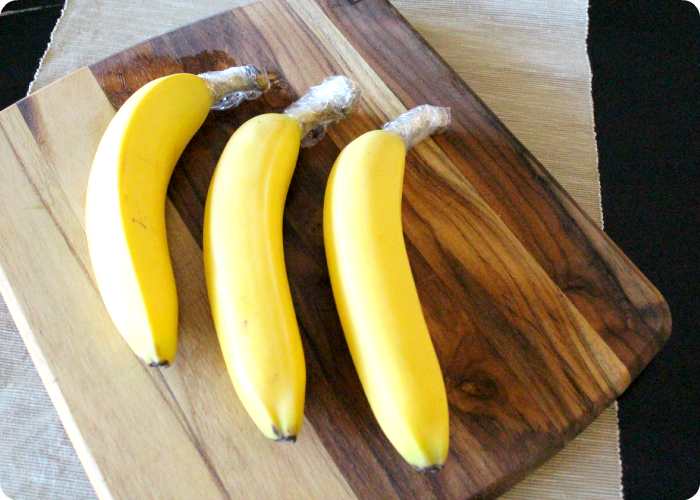 Οι κατακίτρινες μπανάνες είναι η καλύτερη επιλογή, ωστόσο ακόμα και αν βρίσκετε μόνο τις άγουρες, πράσινες μπανάνες, μπορείτε να τις αφήσετε να ωριμάσουν στο σπίτι. Για να μην σας μαυρίσουν πριν την ώρα τους, δέστε την άκρη στην οποία ενώνονται με ένα κομμάτι πλαστικής μεμβράνης.