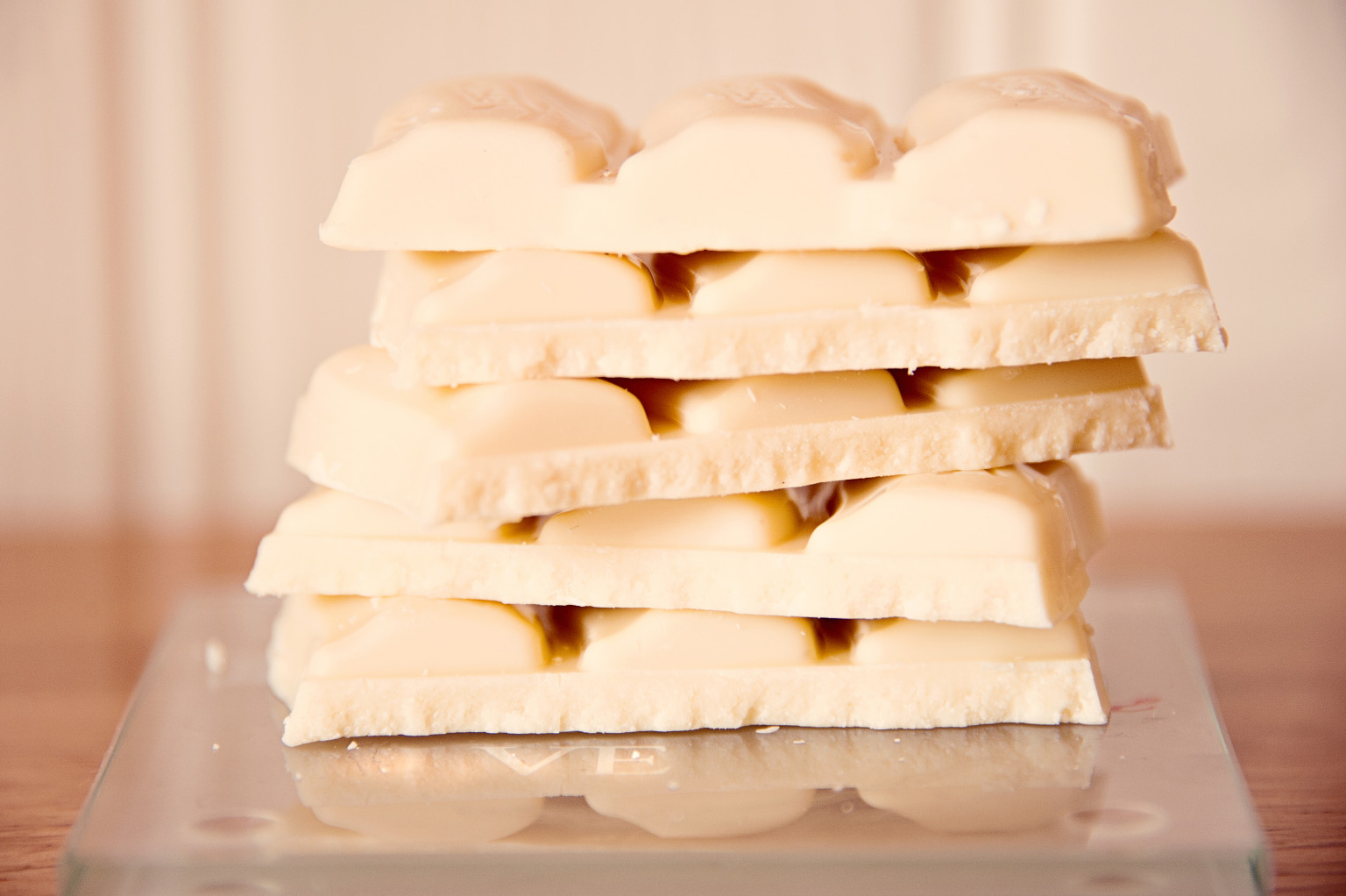 Περιέχει πολύ μεγάλες ποσότητες ζάχαρης. Συγκεκριμένα, περισσότερο από το 50% μιας μπάρας λευκής σοκολάτας αποτελείται από ζάχαρη, ποσοστό που είναι ιδιαίτερα υψηλό, ακόμα και σε σχέση με τη σοκολάτα γάλακτος, της οποίας η περιεκτικότητα σε ζάχαρη αγγίζει το 50%. Περιέχει, επίσης, όχι μόνο πολλά λιπαρά, αλλά πολλά λιπαρά κακής ποιότητας και χοληστερόλη, αποδίδοντας υψηλό θερμιδικό περιεχόμενο. Επιπλέον, για την παρασκευή της δε χρησιμοποιούνται ολόκληροι κόκκοι κακάο, συνεπώς, από τη λευκή σοκολάτα απουσιάζουν τα ωφέλιμα φλαβονοειδή του κακάο, όπως η θεοβρωμίνη.