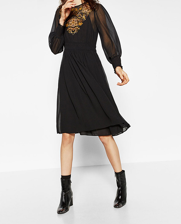 Υπέροχο midi φόρεμα με κέντημα και διαφάνεια, Zara