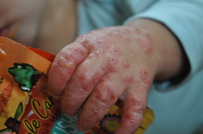 Εκτός αυτού, το παιδί μπορεί να εμφανίσει και στοματίτιδα-φουσκάλες στον λαιμό, τη γλώσσα, τα ούλα, τον ουρανίσκο και το εσωτερικό των παρειών. Οι «βλάβες» αυτές μπορεί να είναι επίπονες και να δυσκολέψουν το παιδί στην κατάποση.