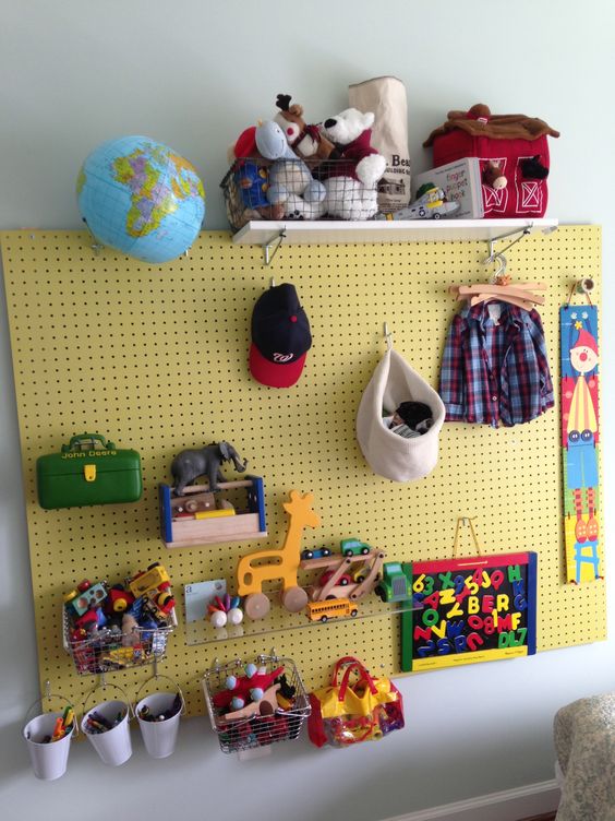 Για τα παιδιά που παίζουν στο γραφείο, ένας μεταλλικός πίνακας ανακοινώσεων μπορεί να χρησιμεύσει ως επιτοίχιος χώρος αποθήκευσης.