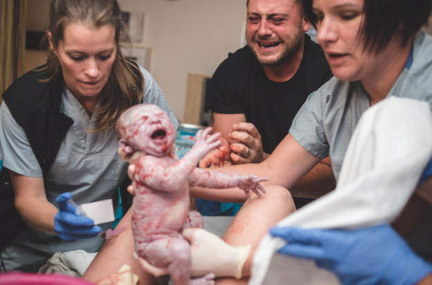 Τρανό παράδειγμα το στιγμιότυπο που απαθανάτισε η Jaydene Freund, που ειδικεύεται στις φωτογραφήσεις τοκετών. Ενώ, λοιπόν, βρισκόταν στην αίθουσα τοκετού, η γυναίκα (που θα γινόταν μαμά για δεύτερη φορά) της ζήτησε να στρέψει τον φακό της προς τη μεριά του μπαμπά, την ώρα που το μωρό τους ερχόταν στον κόσμο. Το βλέμμα του συντρόφου της την στιγμή που ξεγεννά τον γιο του - τον μικρό Theodore- και έπειτα τον κρατά στα χέρια του είναι γεμάτο αγάπη, στοργή και συγκίνηση!