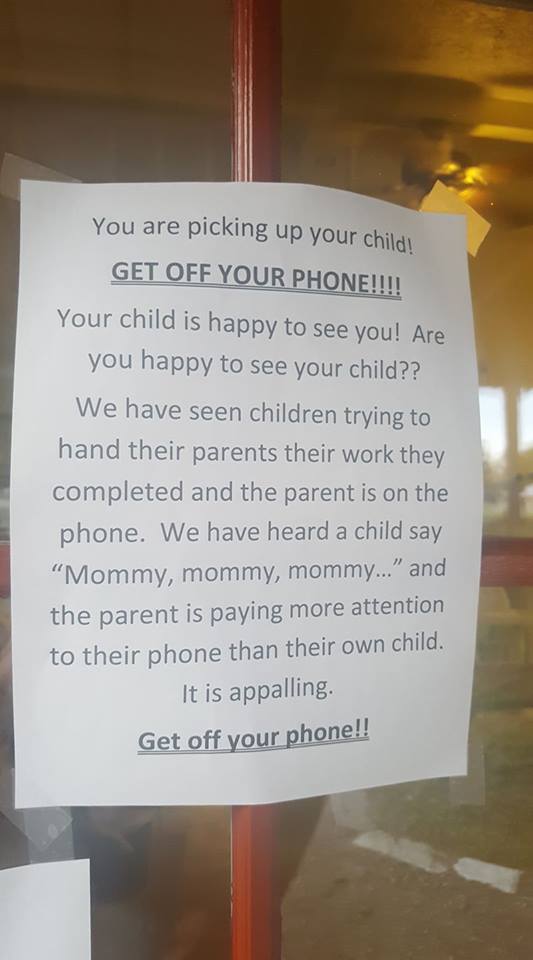 Τη φωτογραφία κοινοποίησε μια μαμά στο Facebook και από τότε έχει γίνει viral με παραπάνω από ένα εκατομμύριο κοινοποιήσεις και 10000 σχόλια, εκ των οποίων κάποια είναι επικριτικά. Έτσι, ενώ πολλοί συμφωνούν με όσα γράφονται στο χαρτί, κάποιοι θεωρούν ότι είναι λάθος να κρίνουμε τόσο εύκολα τους γονείς που φαίνονται «κολλημένοι» με τα κινητά τους. Όπως αναφέρουν, μπορεί εκείνη την ώρα να διευθετούν ένα σημαντικό επαγγελματικό θέμα ή να μαθαίνουν μια δυσάρεστη είδηση για την οικογένειά τους.