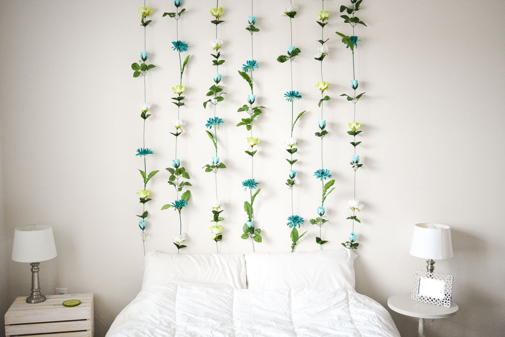 Φτιάξτε γιρλάντες από πλαστικά λουλούδια και κρεμάστε τις πάνω απ’ το προσκεφάλι του κρεβατιού. Μια ρομαντική αλλά και ανοιιξιάτικη νότα στην κρεβατοκάμαρά σας.