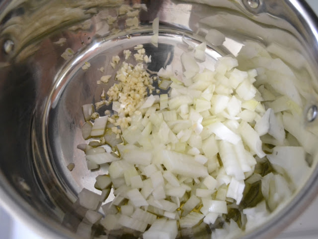 Ψιλοκόψτε το κρεμμύδι και το σκόρδο. Στη συνέχεια, αφήστε τα να σοταριστούν με το λάδι σε μέτρια φωτιά.