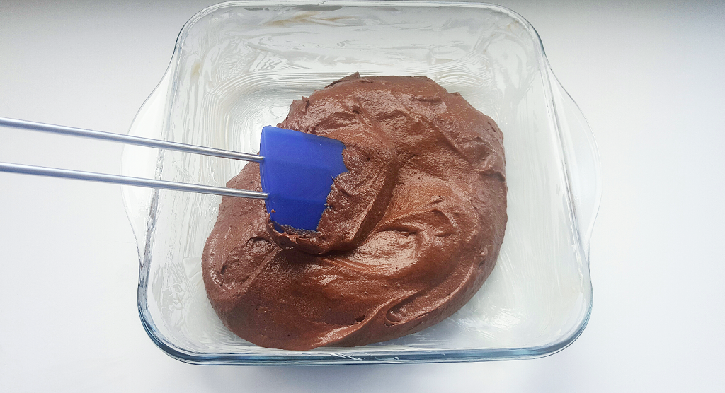 Βουτυρώστε ένα πυρέξ 20*20, ρίξτε μέσα το μείγμα μέσα και απλώστε το ομοιόμορφα με μια σπάτουλα. Ψήστε για 25 λεπτά στον αέρα στους 190 βαθμούς.