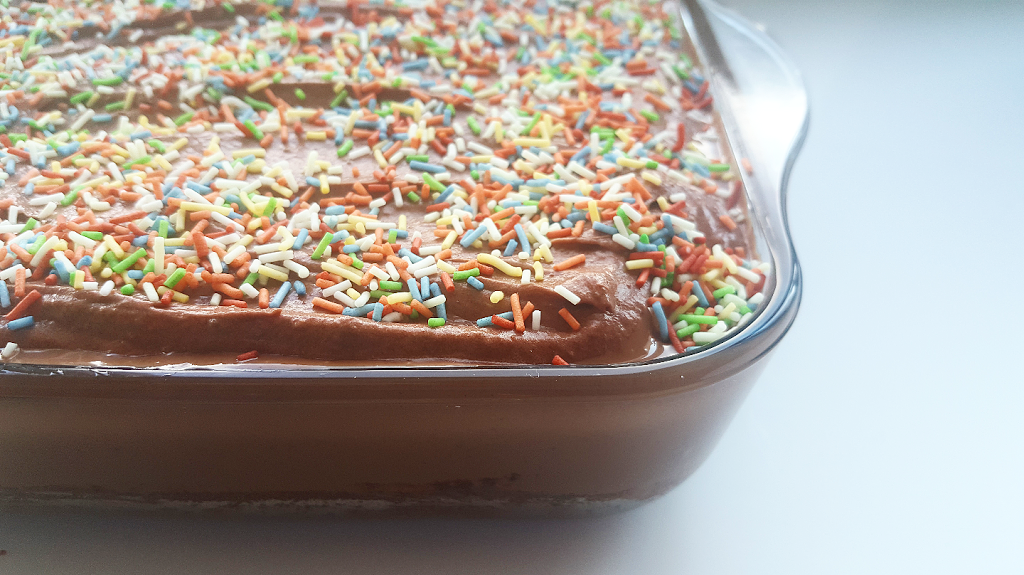Πασπαλίστε με λίγη χρωματιστή τρούφα και αφήστε το γλυκό στο ψυγείο για δύο ώρες, μέχρι να κρυώσει. Σκεπάστε το για να μην ξεραθεί και απολαύστε το!