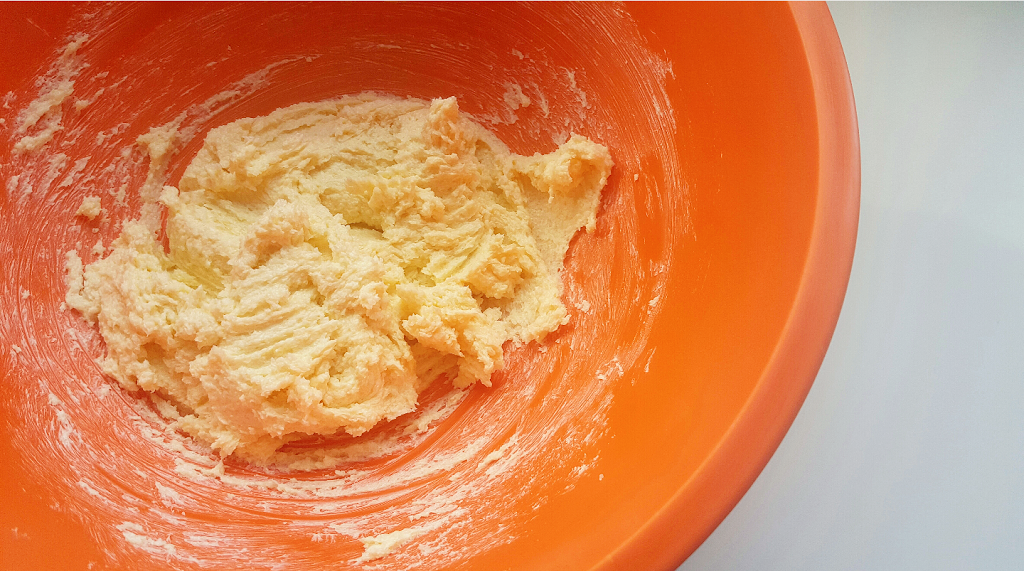 Προθερμάνετε τον φούρνο στους 200 βαθμούς στον αέρα. Ταυτόχρονα, με ένα πιρούνι ανακατέψτε το βούτυρο με την ζάχαρη μέχρι να γίνει μια κρέμα. Σε ένα ξεχωριστό μπολ, κοσκινίστε το αλεύρι, το κακάο, το μπέικιν και το αλάτι. Ρίξτε εναλλάξ ένα- ένα τα αβγά και το μείγμα από τα στεγνά υλικά μέσα στο βούτυρο και ανακατέψτε καλά και πάλι με ένα πιρούνι.