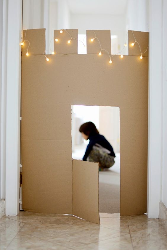 Χωρίς μεγάλη διαδικασία, μπορείτε να μετατρέψετε το δωμάτιο του παιδιού σε φρούριο, κόβοντας τα χαρτόκουτα όπως στη φωτογραφία και φροντίζοντας το πλάτος της κατασκευής να αντιστοιχεί μ' αυτό της πόρτας του δωματίου του.