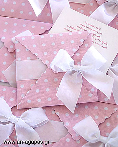 Το χαριτωμένο αυτό κοπτικό μπαίνει είτε σε φάκελο είτε σε κουτάκι. Σε συνεννόηση με το κατάστημα μπορείτε να διαμορφώσετε τα χρώματα ή και το μέγεθος του προσκλητηρίου.