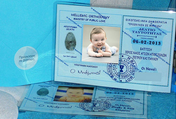 Η τελευταία λέξη της «μόδας» στα προσκλητήρια δεν είναι άλλη από τις ταυτότητες που περιλαμβάνουν φωτογραφία του μωρού και όλες τις πληροφορίες του event, γραμμένες σε στιλ… αστυνομικό.